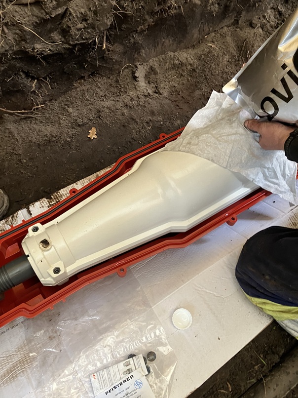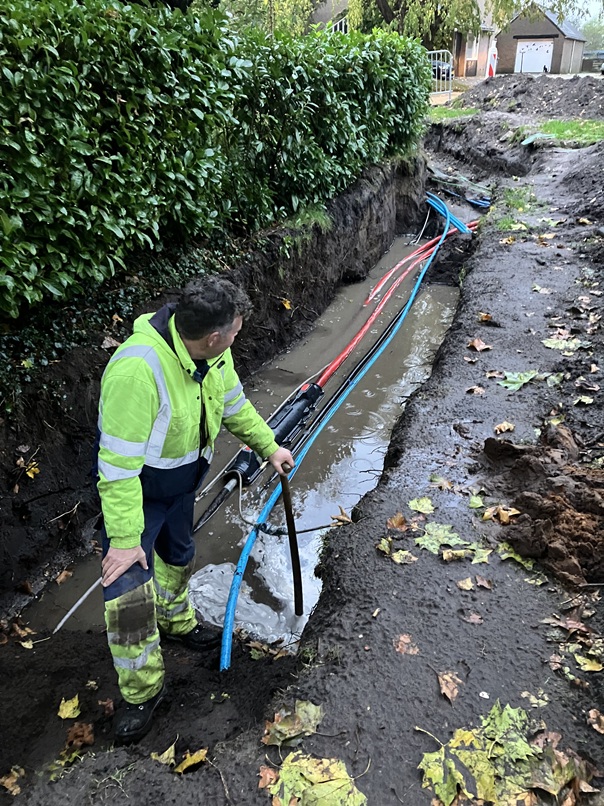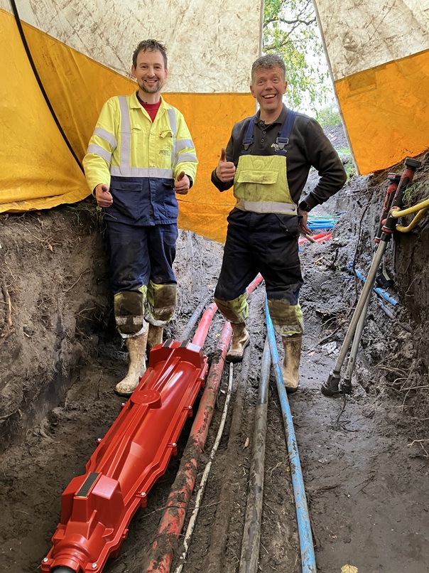 Een project bij netbeheerder Rendo, waarbij een GPLK-kabeltraject werd gerooid, vroeg om een innovatieve verbindingsoplossing. De resterende GPLK-kabel moest verbonden worden met een XLPE-kabel van 240 mm², afkomstig uit dezelfde richting. Een standaardverbinding zou normaal gesproken vereisen dat de XLPE-kabel omgeklapt wordt — een ingreep die veel graafwerk vraagt vanwege de minimale buigradius. In dit geval was dat niet mogelijk: er lagen andere leidingen in de grond en de kabels lagen direct naast een privéterrein.